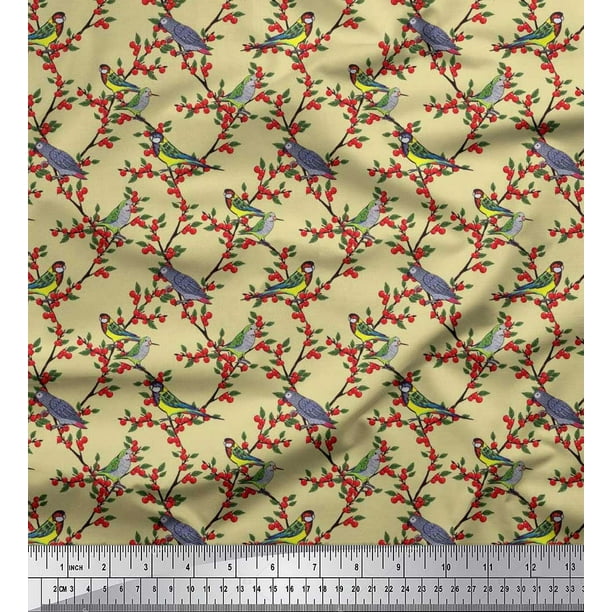 Soimoi Cotton Cambric Fabric Leaves Red Berries Parrot Bird Print Sewing Fabric Yard 42 Inch Wide Walmart Com